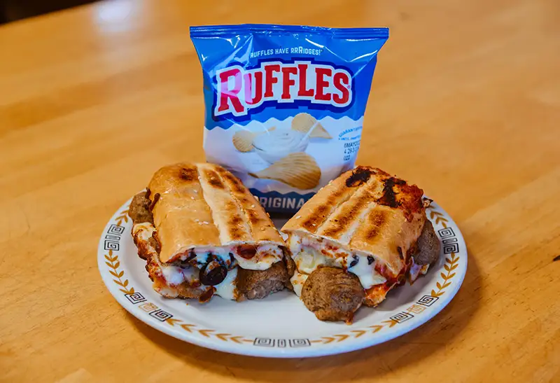 Pizza sauce, tender meatballs, onions, and melted mozzarella are all piled into a toasted sub. It’s the classic you know and love with chips on the side for that perfect crunch!